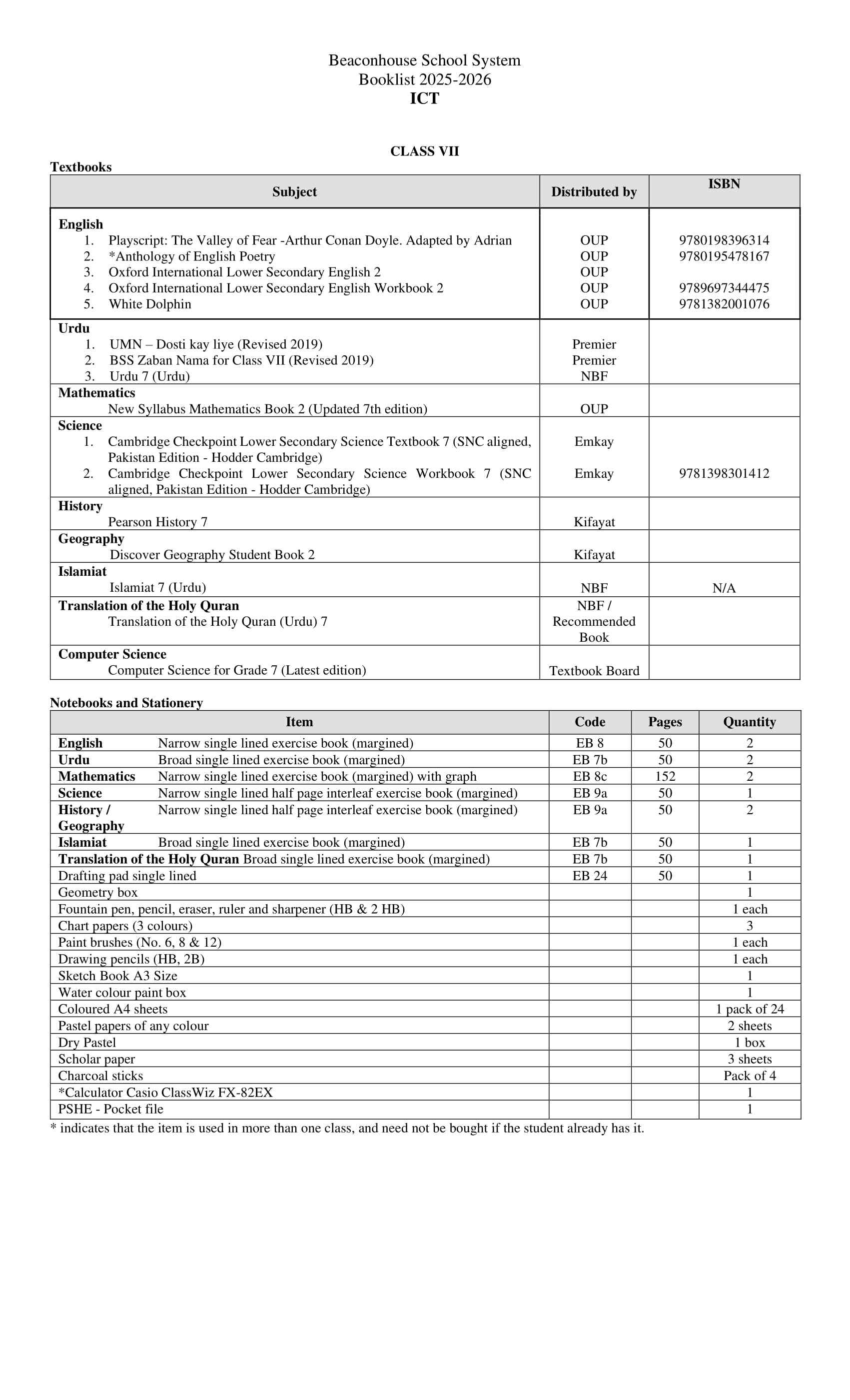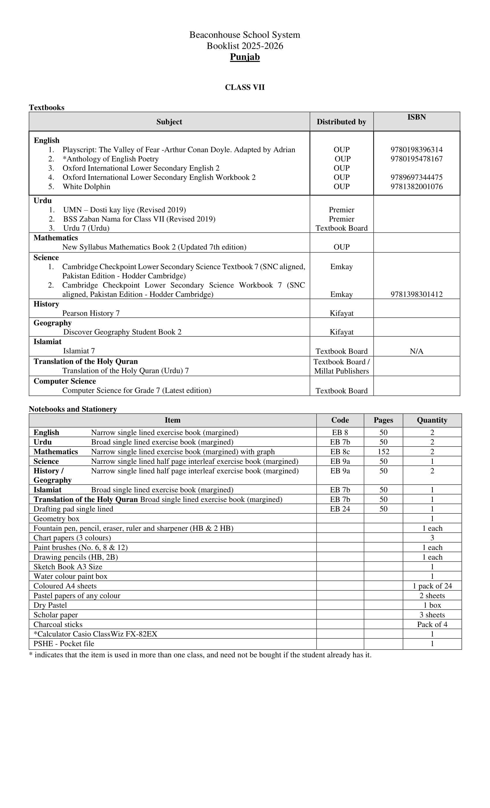 Please Mention your region when ordering. Kindly select your Book Pack according to your branch. Punjab region schools select Beaconhouse Punjab book pack and for Federal/Islamabad Region Kindly select ICT Federal Region Book Pack.Beaconhouse School System Book Pack For Class 7th.