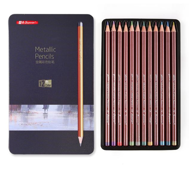 METALLIC PENCIL 12 PCS TIN